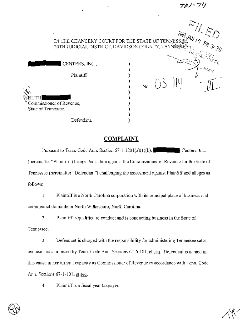 Get the free A01 Complaint regarding assessment of sales, use taxes