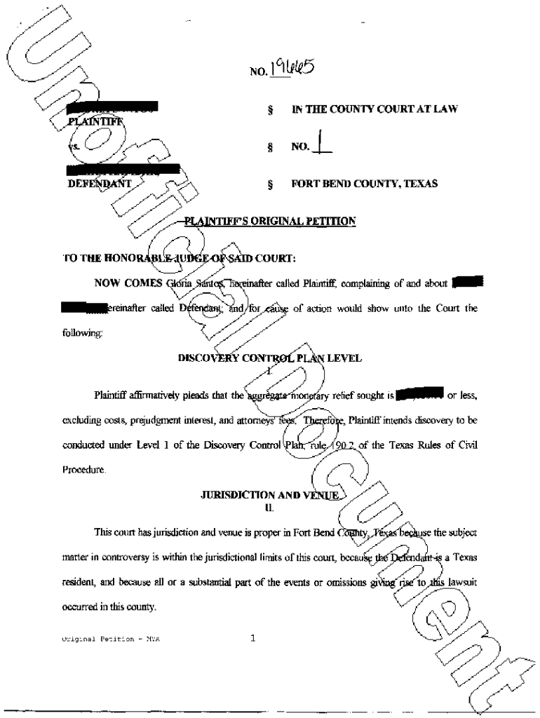 Get the free A01 Plaintiffs Original Petition