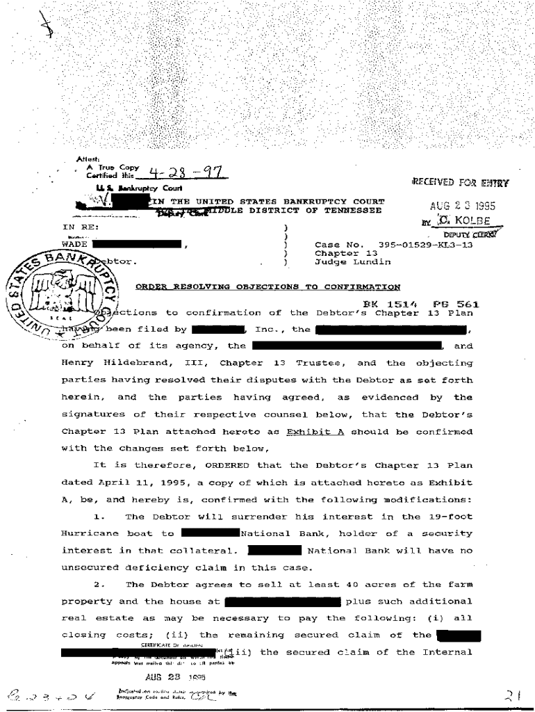 Get the free Order Resolving Objections to Confirmation