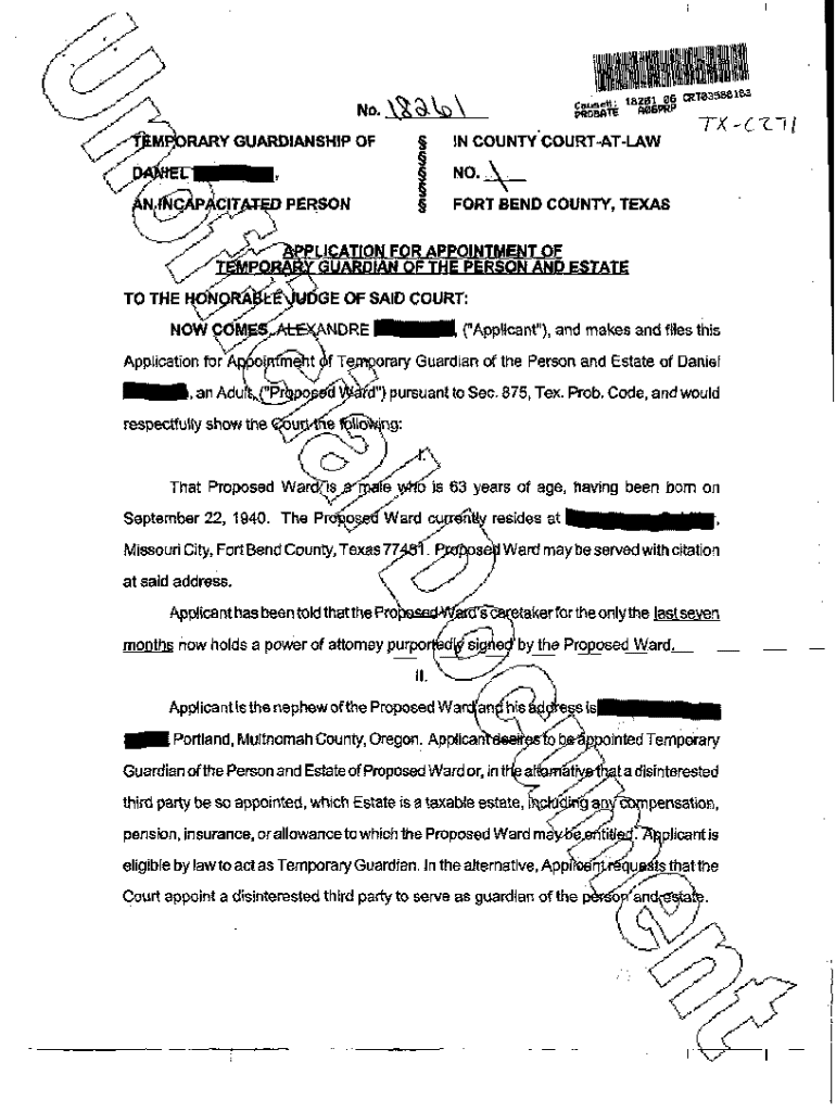 Get the free A02 Application for Appointment of Temporary Guardian