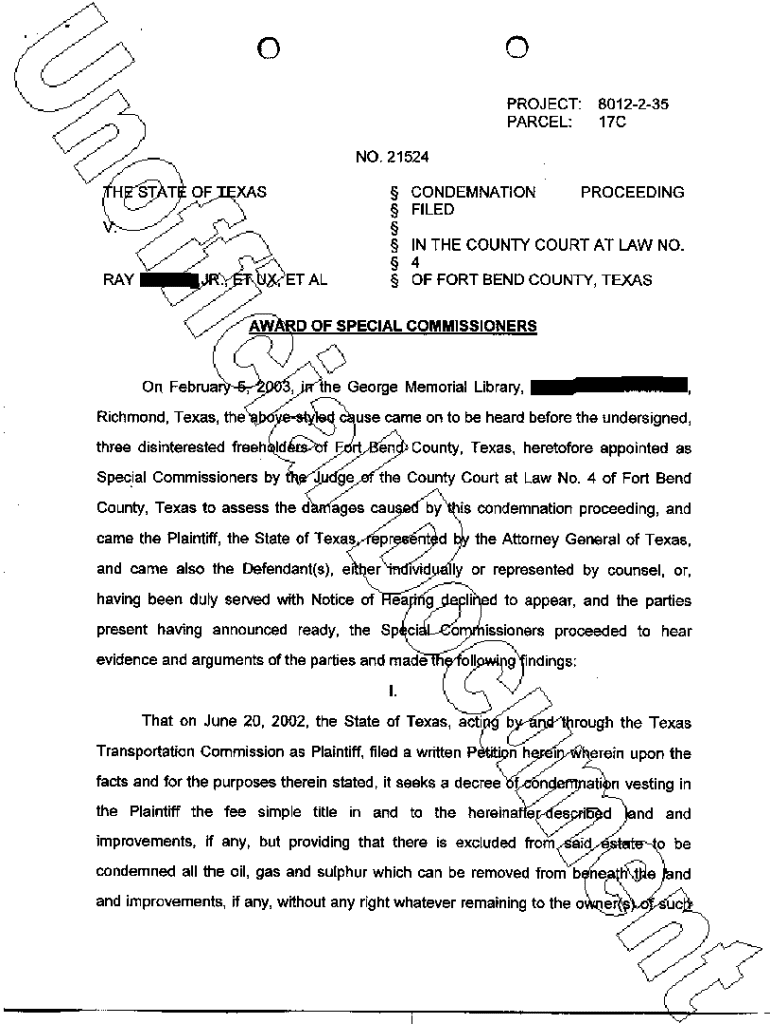 Get the free A08 Award of Commissioners