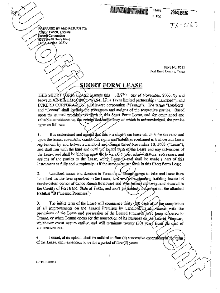 Get the free Short Form Lease for Drug Store