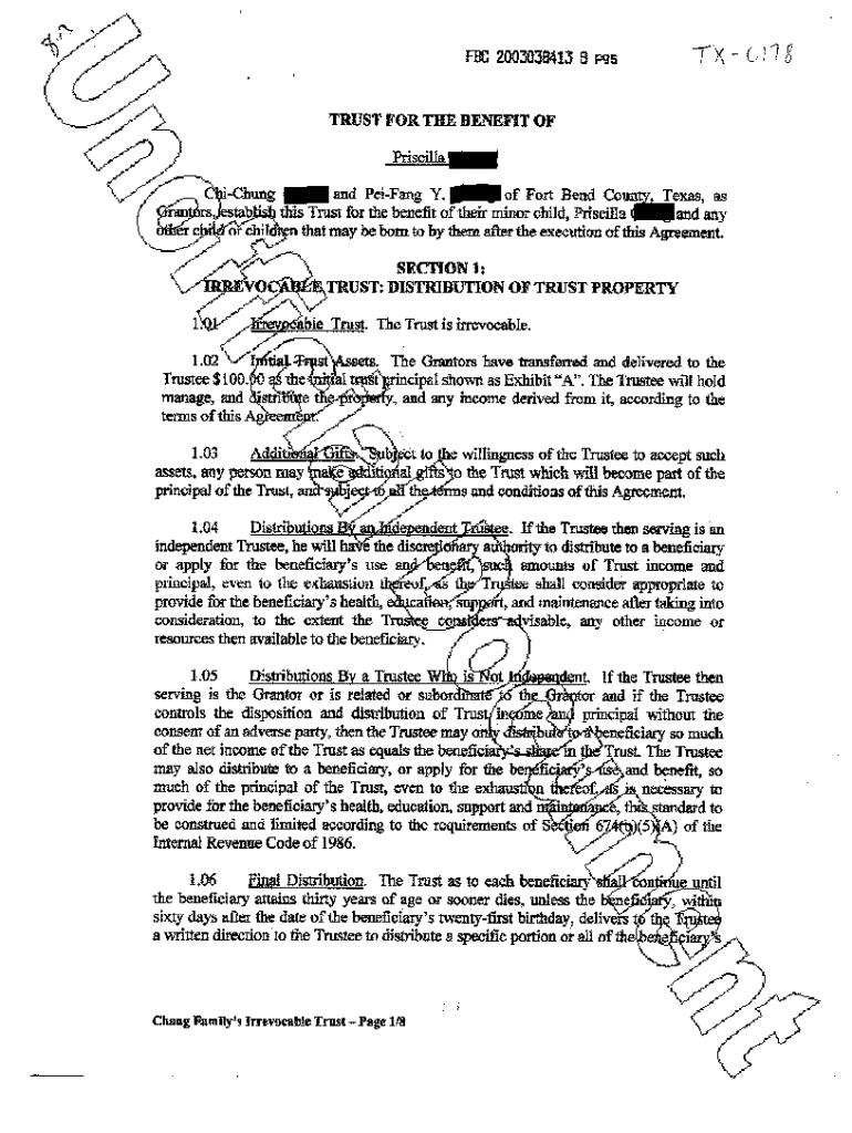 Get the free Irrevocable trust Distribution of trust property