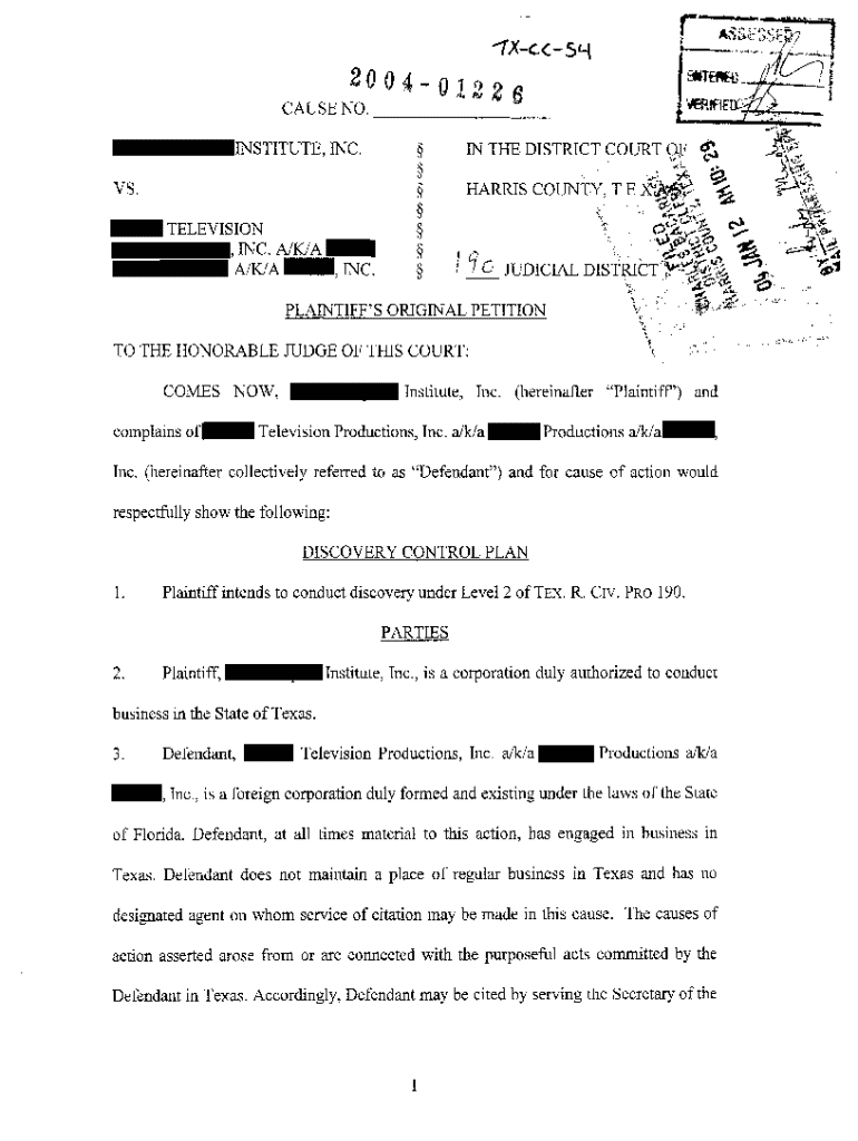 Get the free A01 Plaintiff's Original Petition regarding Deceptive Trade Practices