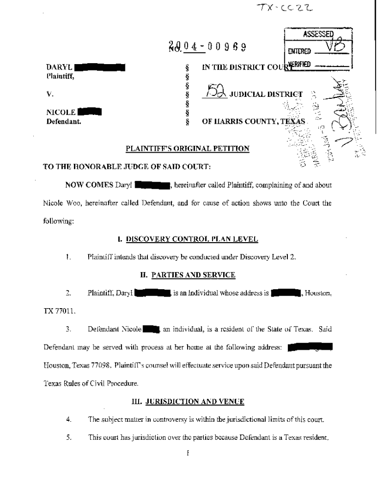 A01 Plaintiffs Original Petition for Automobile Motor Vehicle Accident