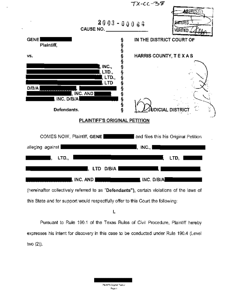 The A01 Plaintiff's Original Petition is a legal document filed by a plaintiff to initiate a lawsuit, detailing the facts of the case and the relief sought.
