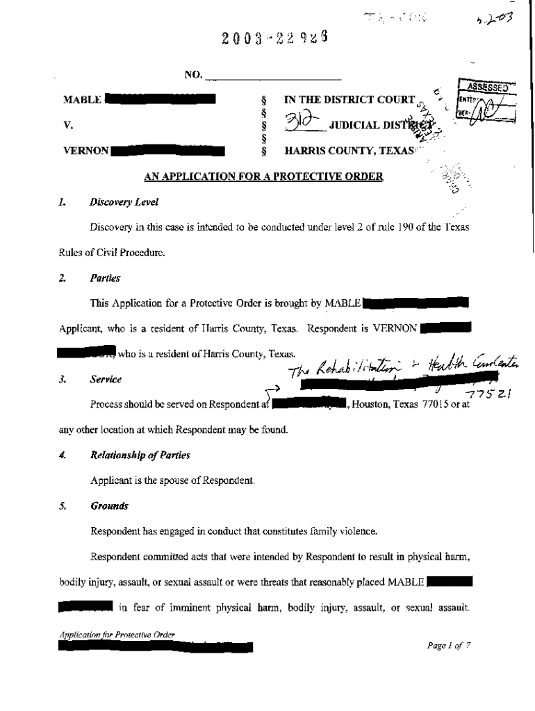 Get the free A03 Application for a Protective Order