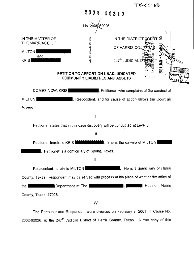 Get the free A01 Petition to Partition Community Property