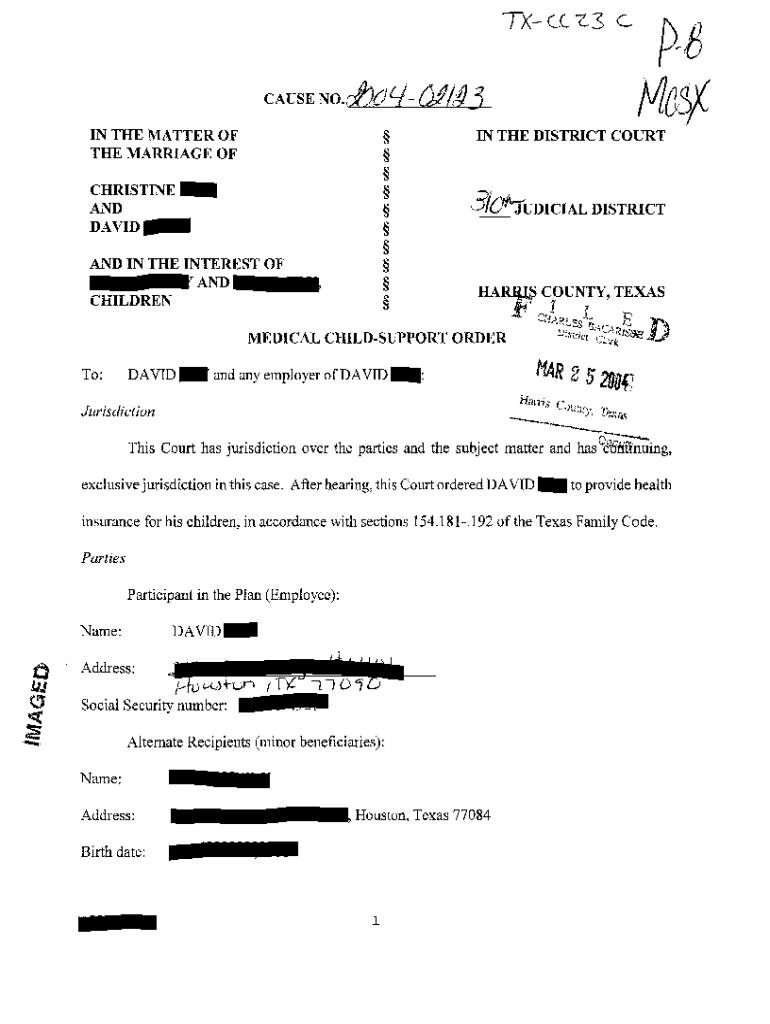 Get the free A04 Medical Child Support Order