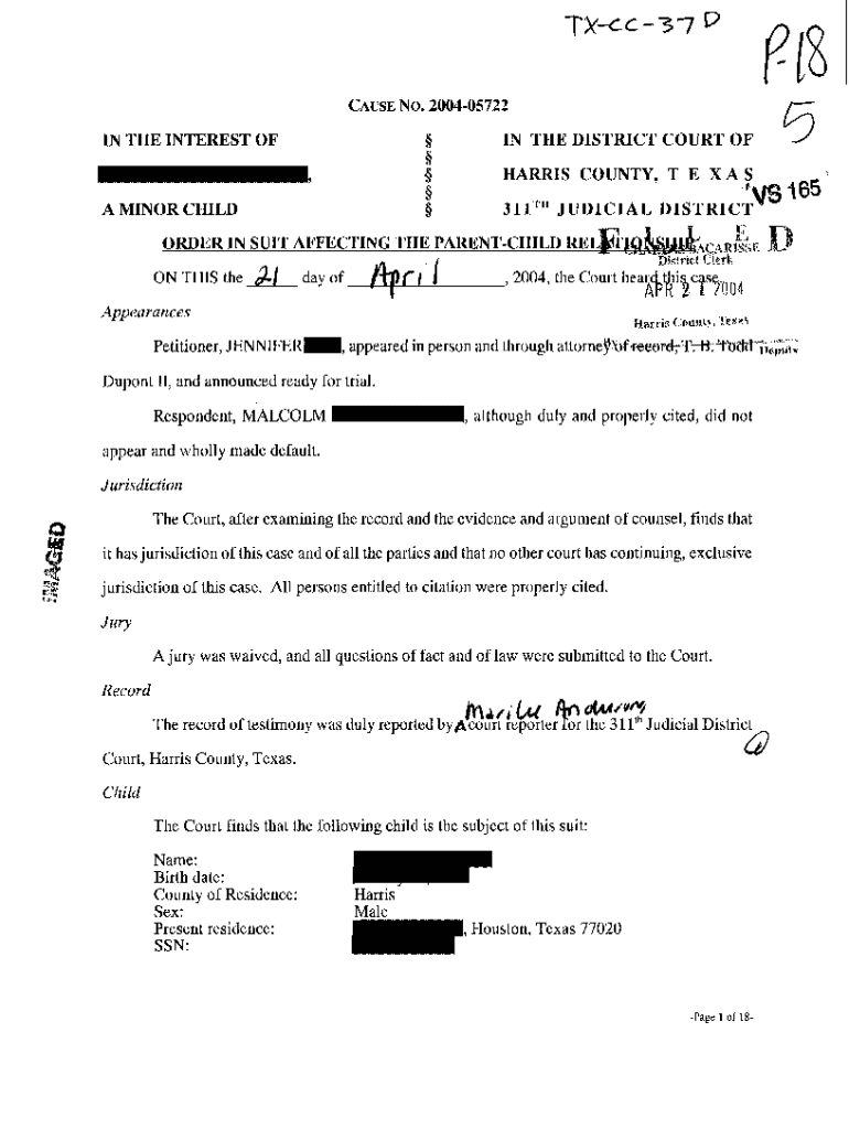 A05 Order in Suit Affecting the Parent / Child Relationship