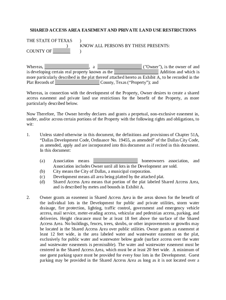 Get the free Shared Access Area Easement and Private Land Use Restrictions template