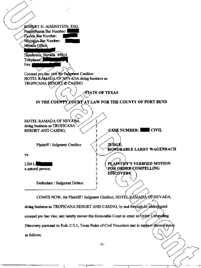 Get the free A05 Motion To Compel Discovery