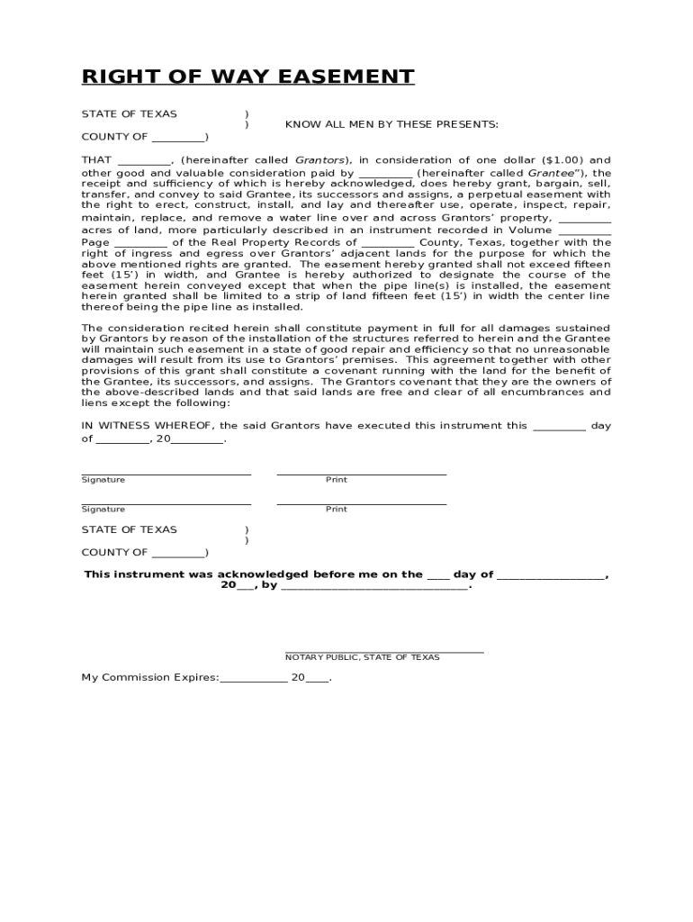 The form should specify any width restrictions and the exact rights granted to prevent legal ambiguities.