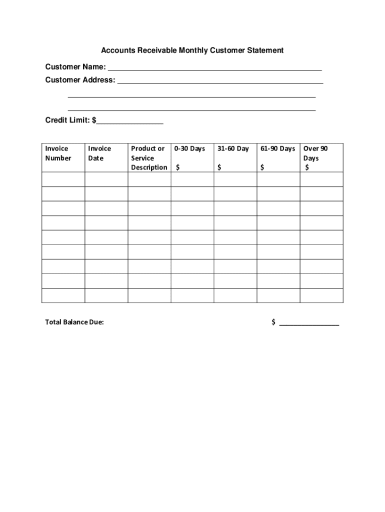 Get the free Accounts Receivable Monthly Customer Statement