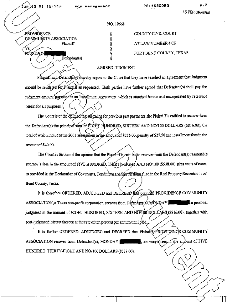 Get the free A10 Agreed Judgment