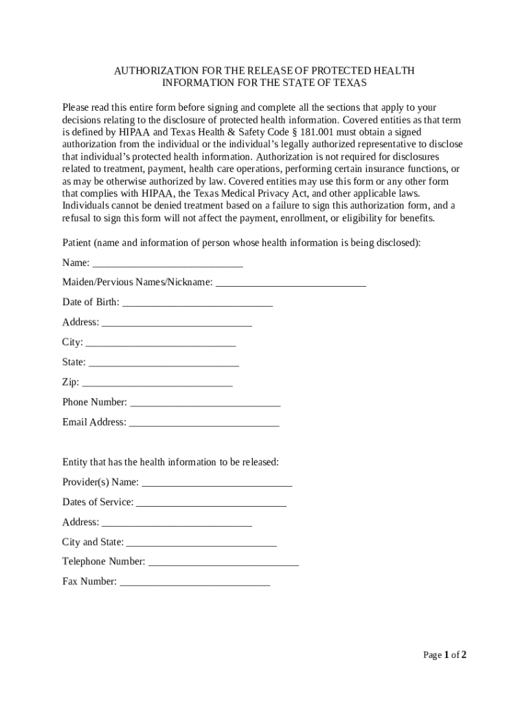 1.Open the PDF file of the Texas Release and Authorization on pdfFiller.