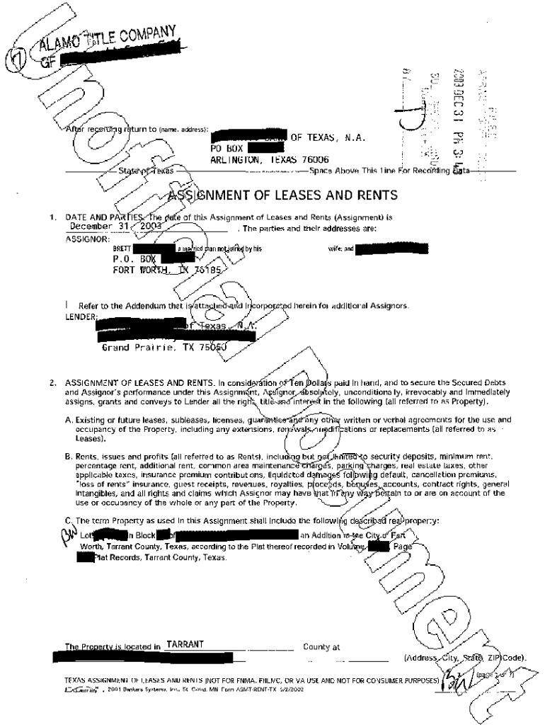 Get the free Assignment of Leases and Rents