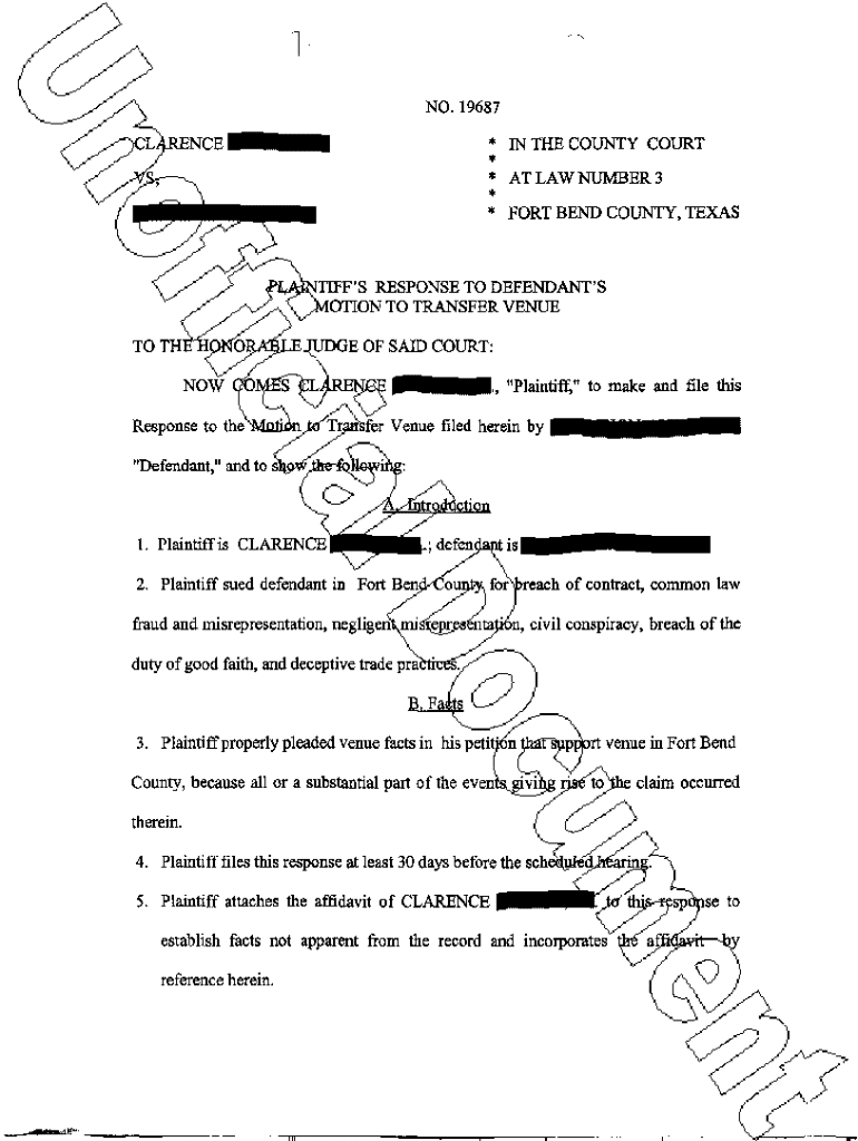 Get the free A10 Plaintiffs Response To Motion To Transfer Venue