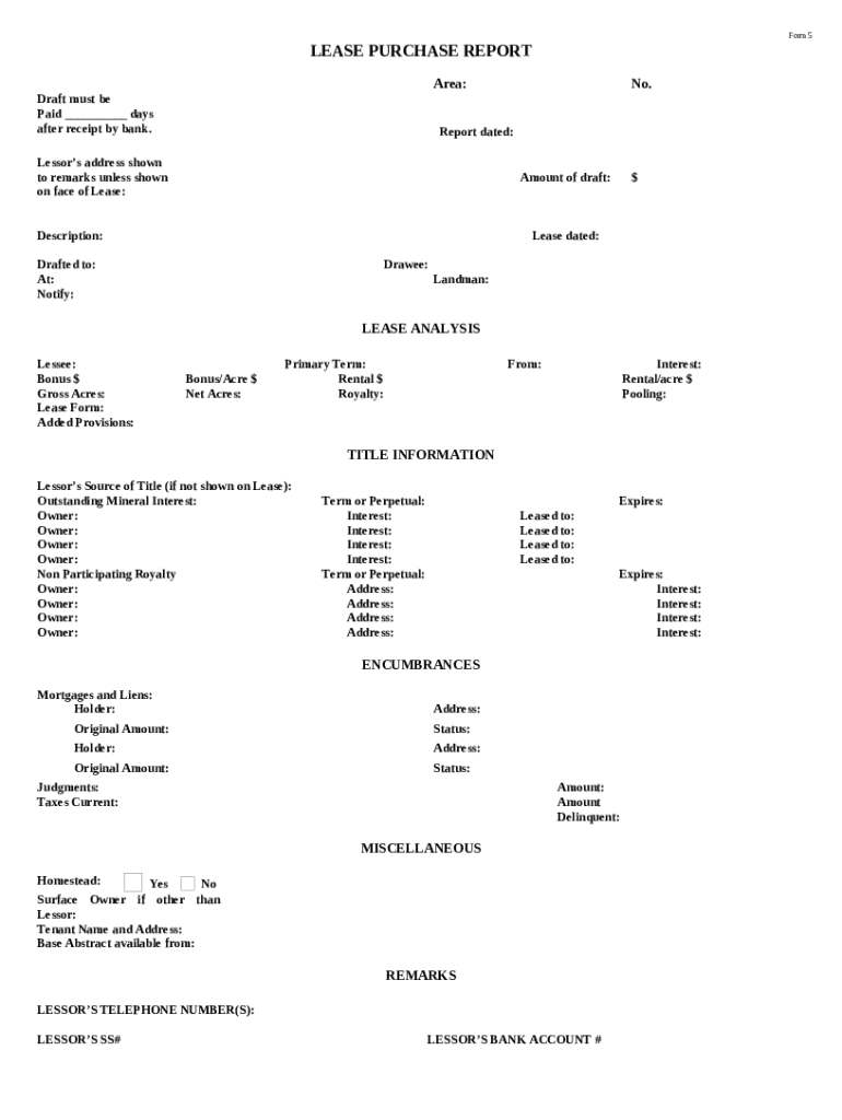 Understanding the fields in a lease purchase report is essential for accurate completion. Each section holds specific information necessary for legal compliance and financial transparency.