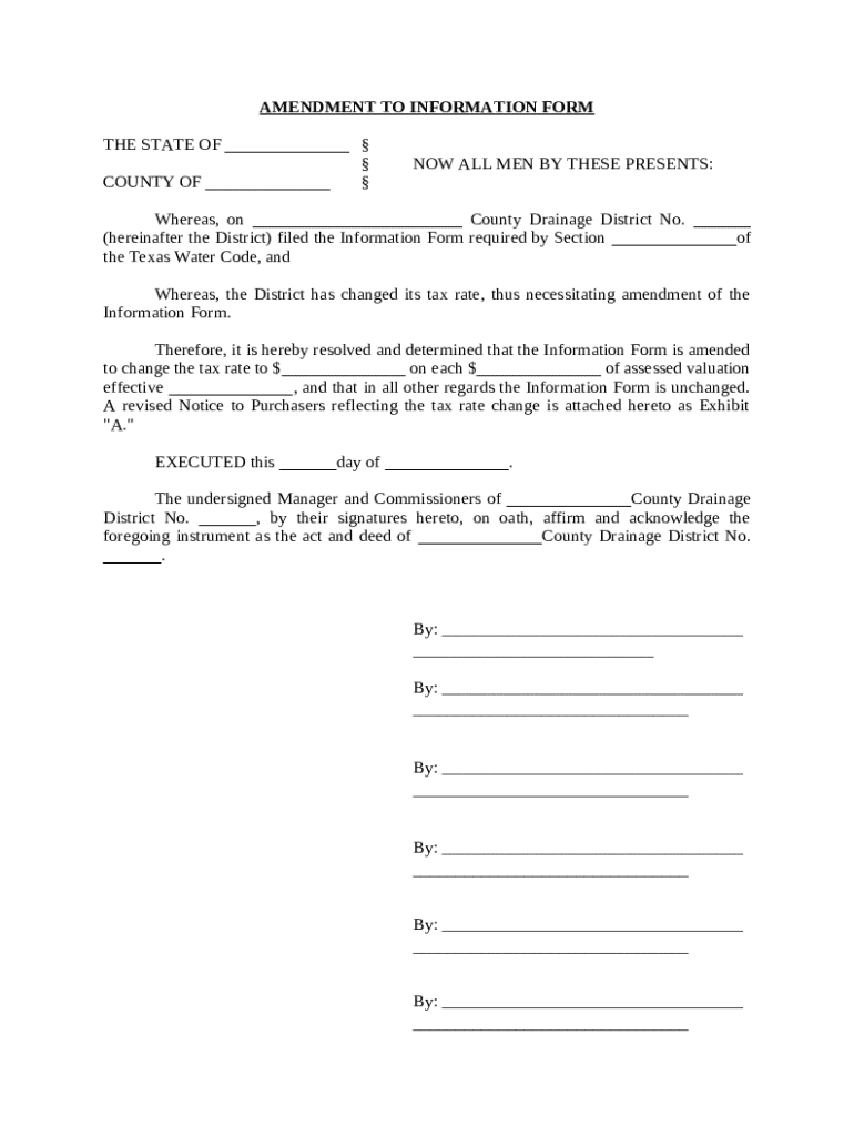 Filling out an amendment to information form involves a few essential steps. Start by understanding the specific changes you need to report, particularly regarding tax rate changes. Ensure that all details are accurate and comply with the legal stipulations outlined in documents such as the Texas Water Code.