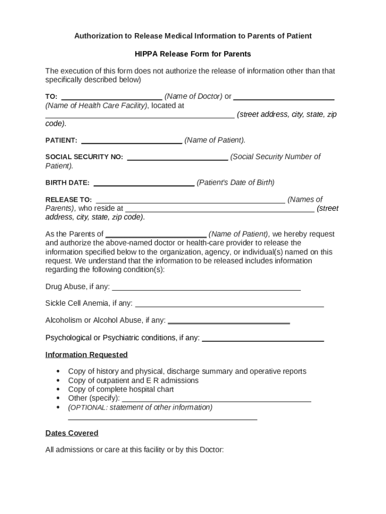 Doctors, hospitals, and clinics may require a release form to disclose medical records.