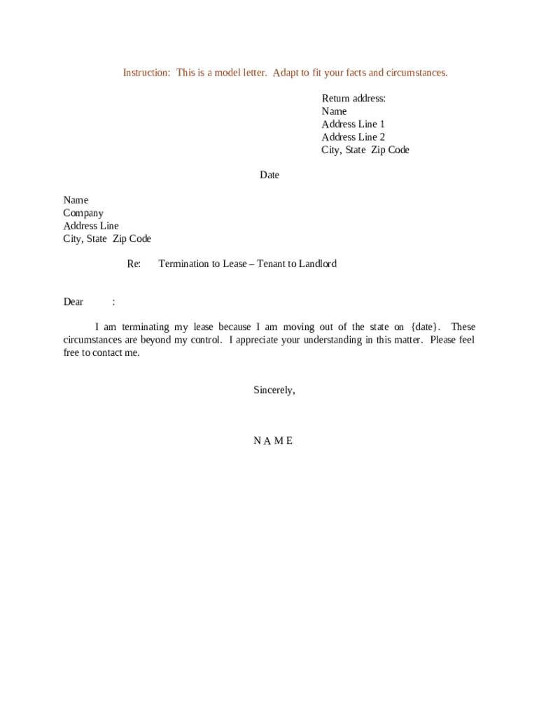 7.In the body of the letter, mention the lease address and specify the termination date.