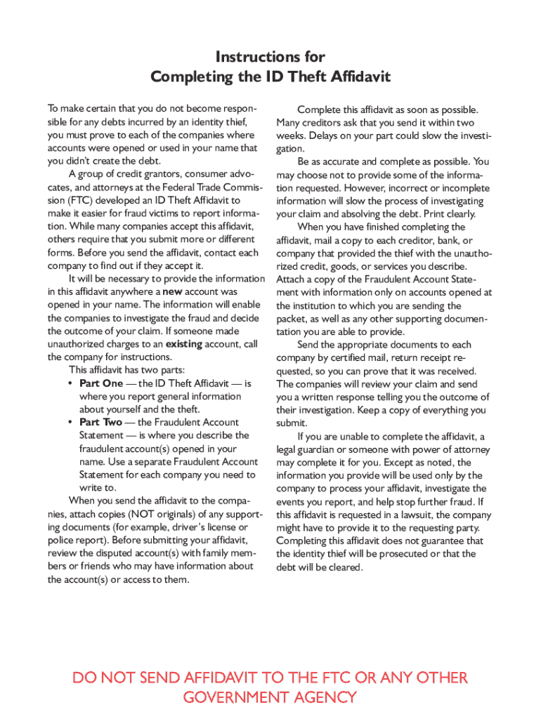 How to fill out the federal trade commission affidavit