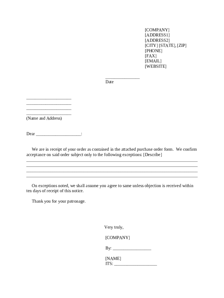 These forms are often used in business orders and agreements to confirm acceptance of provided services or products.