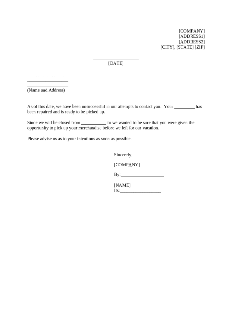 Get the free Request for Pick Up of Repaired Merchandise template