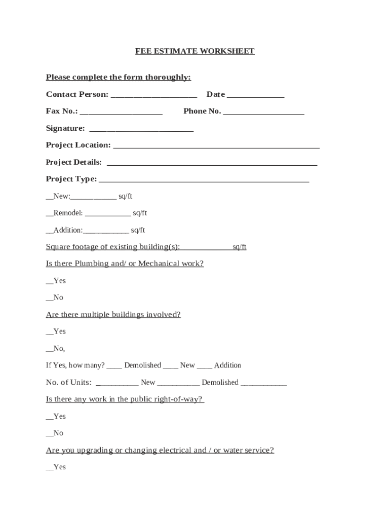 Filling out a fee estimate worksheet form can streamline your project planning and provide essential clarity on costs. This guide will explain the various components, considerations, and best practices for creating a comprehensive estimate.