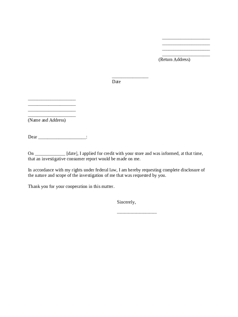 Get the free Request for Disclosure on Consumer Credit Investigation template