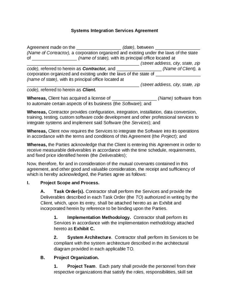 Get the free Systems Integration Services Agreement template