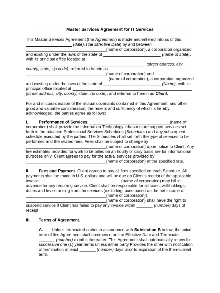 The Master Services Agreement for IT Services is a fillable form in MS Word extension required to be submitted to the specific address to provide specific info. It has to be filled-out and signed, which may be done manually, or by using a particular software like PDFfiller. This tool lets you fill out any PDF or Word document right in the web, customize it according to your requirements and put a legally-binding e-signature. Right away after completion, user can easily send the Master Services Agreement for IT Services to the appropriate recipient, or multiple recipients via email or fax. The template is printable too from PDFfiller feature and options offered for printing out adjustment. Both in electronic and in hard copy, your form will have a organized and professional look. You can also turn it into a template for later, there's no need to create a new document again. All that needed is to amend the ready document.