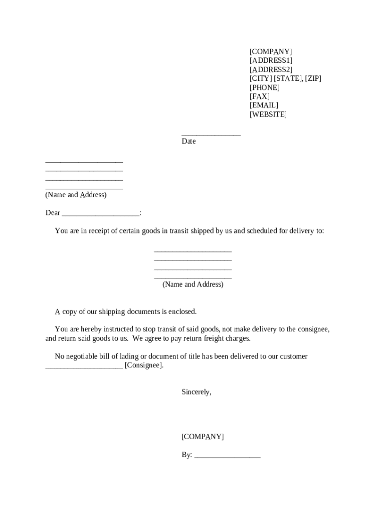 Include clearly defined reasons for stopping the goods, ensuring the recipient understands the situation fully.