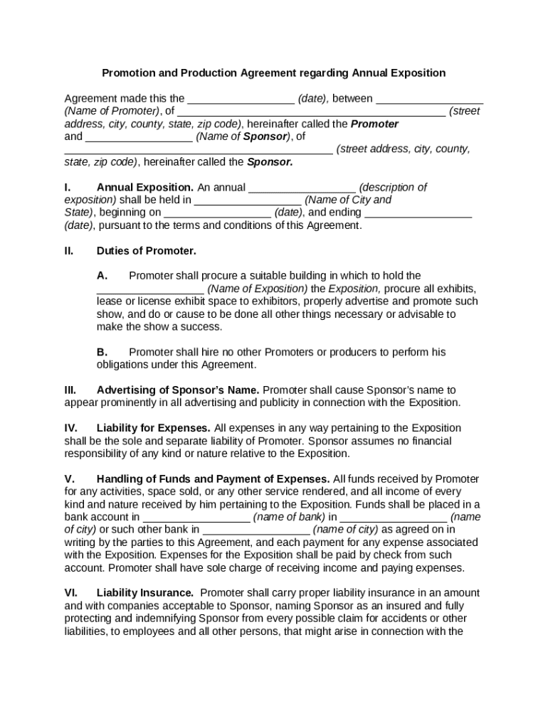 This form is a promotion and production agreement regarding annual exposition.