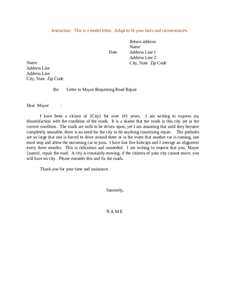 Get the free Sample Letter to Mayor Requesting Road Repair template