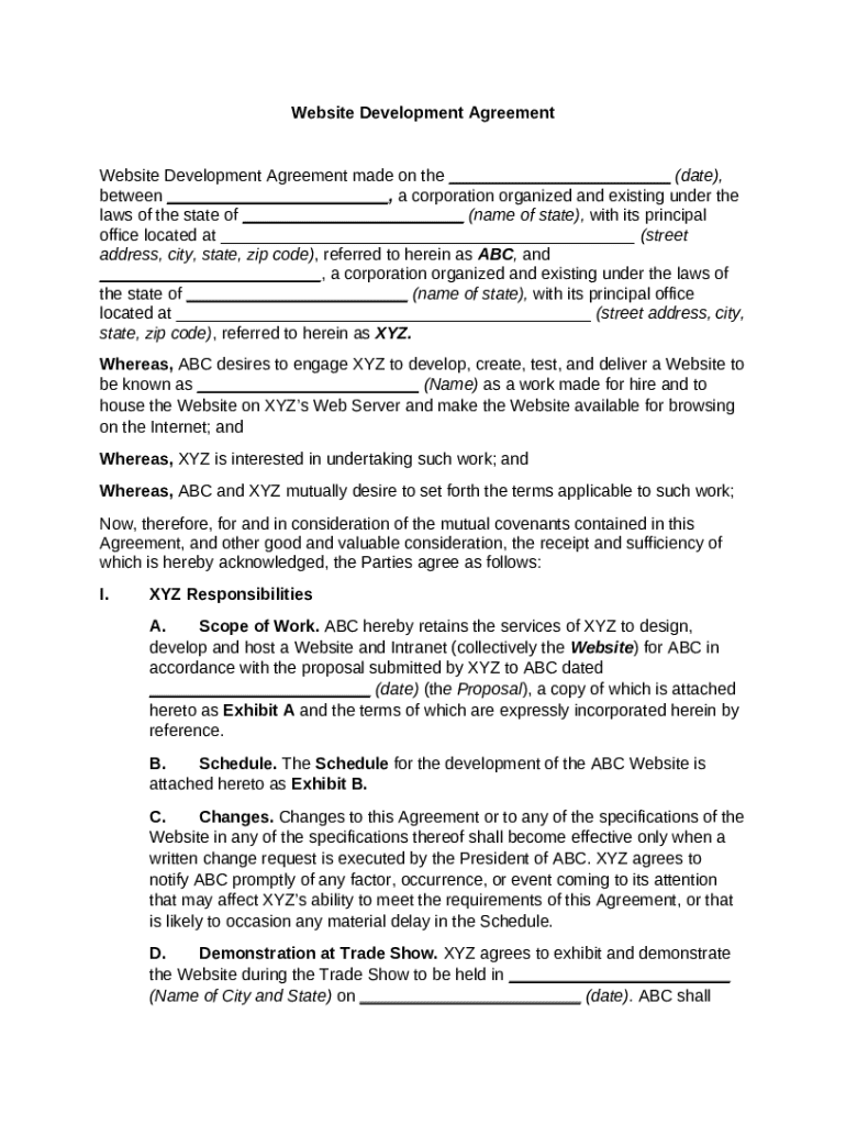 A website development agreement is a formal contract that outlines the terms and conditions under which a website will be created, maintained, or revised. Having a structured agreement is crucial for protecting both parties' interests and ensuring that expectations are met throughout the project lifecycle.