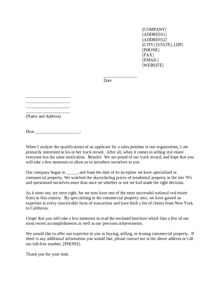 Get the free Sales Letter, Commercial Property Broker template