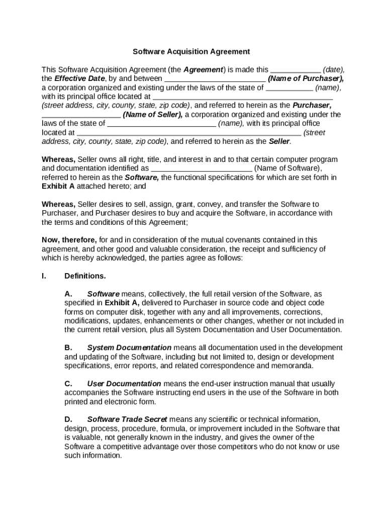 Get the free Software Acquisition Agreement template