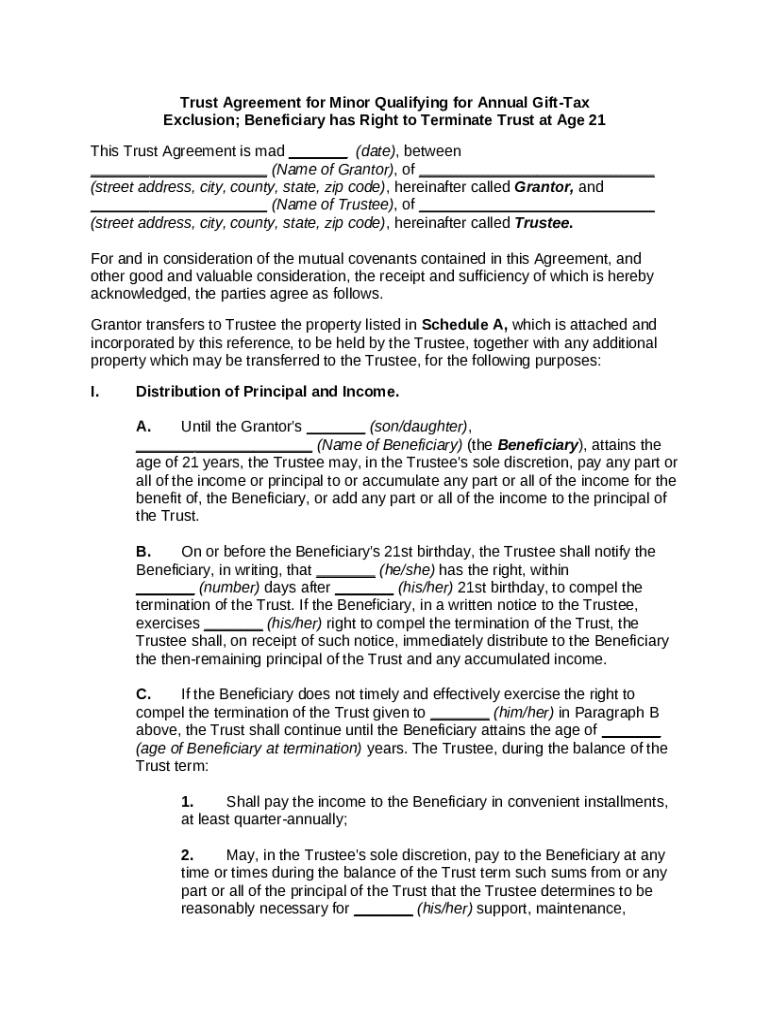 Get the free Trust Agreement for Minor Qualifying for Annual Gift-Tax Exclusion; Beneficiary has ...