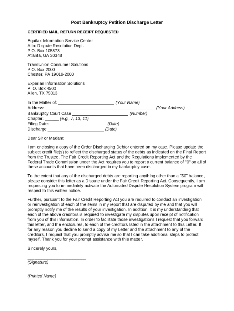 Get the free Post Bankruptcy Petition Discharge Letter template