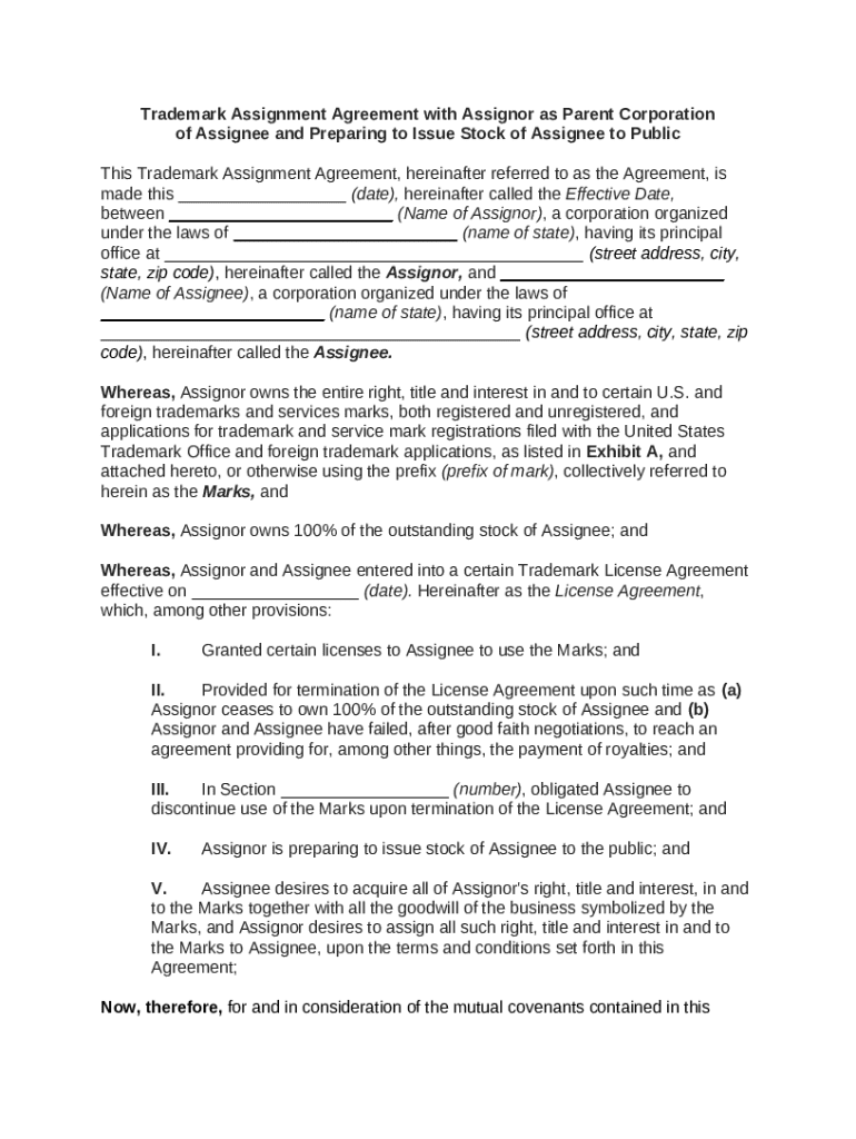 Get the free Trademark Assignment Agreement with Assignor as Parent Corporation of Assignee and P...