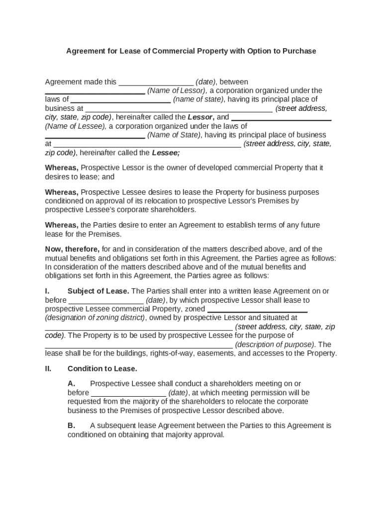 Detailed Guide on Agreement for Lease of Commercial Property with Option to Purchase