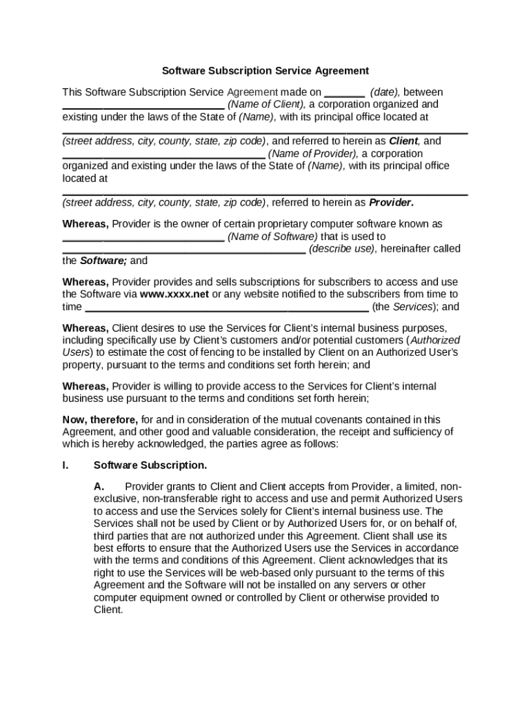Get the free Software Subscription Service Agreement template