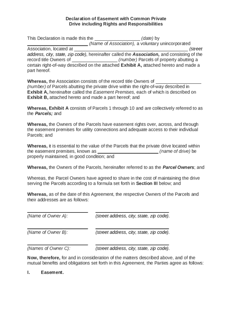 Get the free Declaration of Easement with Common Private Drive including Rights and Responsibilit...