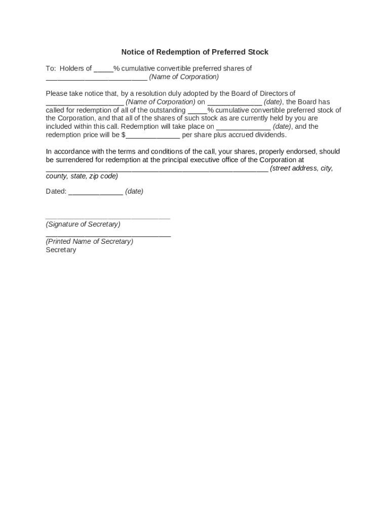6.Include necessary details about the redemption amount and payment methods if applicable.