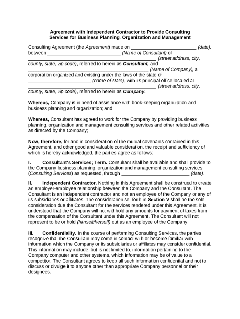 Get the free Agreement with Independent Contractor to Provide Consulting Services for Business Pl...
