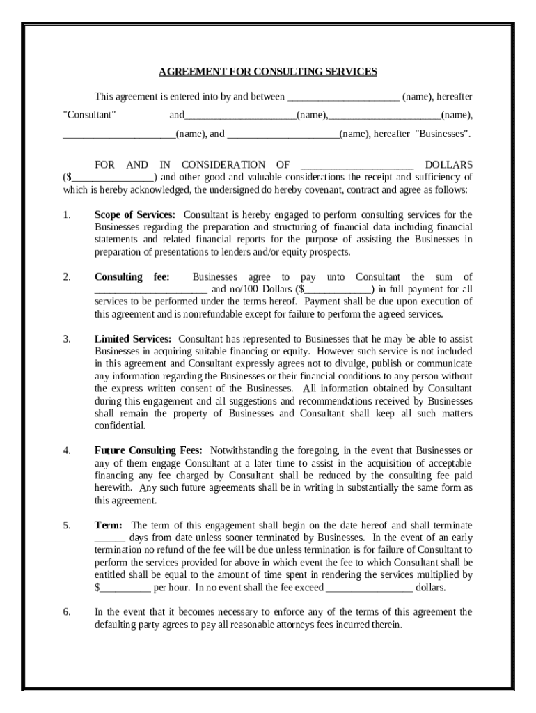 A consulting agreement details the specific services performed and the terms under which they are provided.
