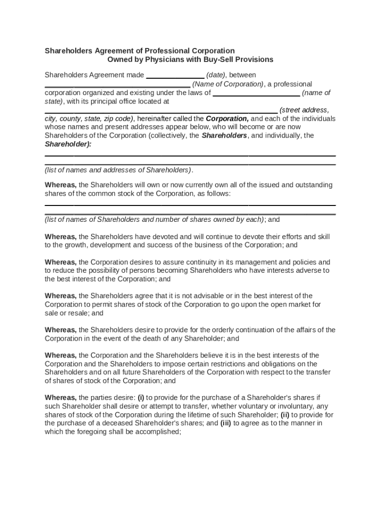 Comprehensive Guide to Shareholders Agreement of Professional Corporation