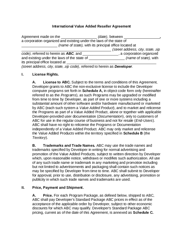 An International Value Added Reseller (IVAR) agreement is a vital contract that outlines the responsibilities, rights, and obligations between the software developer and the reseller. Its purpose is to define how the reseller can market and sell the software products while ensuring that the developer receives royalties or a share of the revenues.